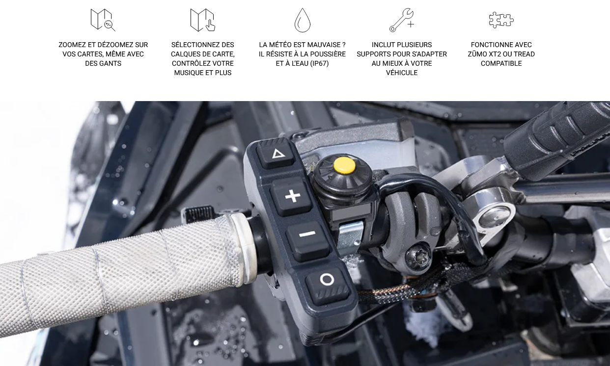 Contrôlez votre GPS moto zūmo® XT2 ou votre Tread® compatible sans lâcher le guidon de votre moto, motoneige ou quad.